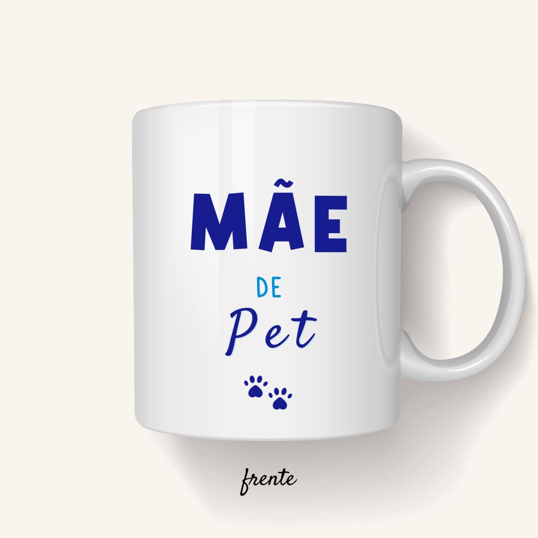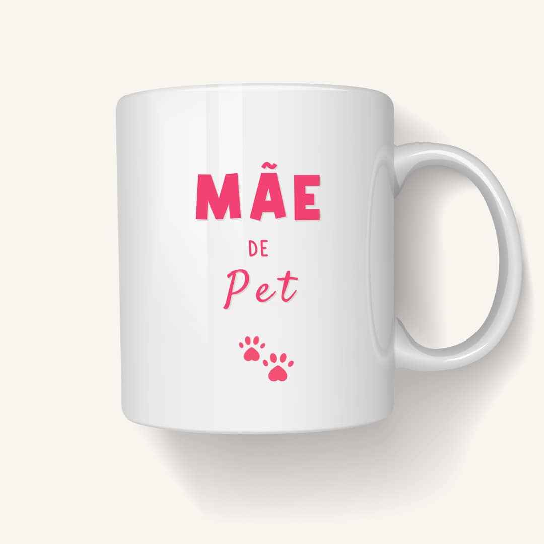 A caneca ” Mãe de pet ” representa, através desse novo conceito de “mãe”, todo esse amor que os peludos nos despertam.